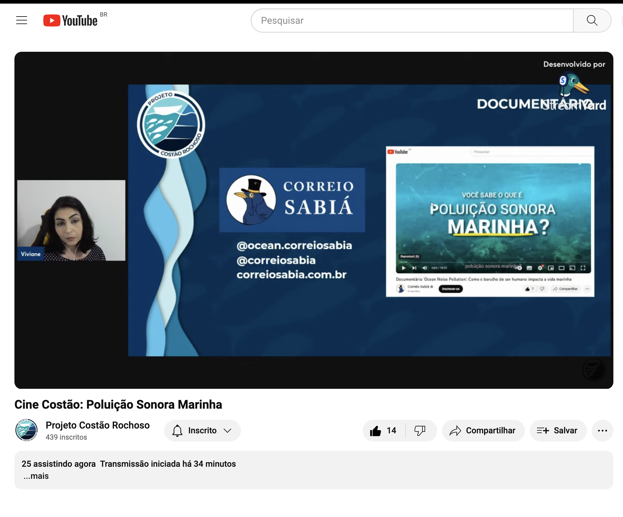 O documentário completo sobre poluição sonora marinha está disponível no canal do Correio Sabiá no YouTube.